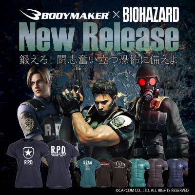 日本発のスポーツブランド「 ボディメーカー」は、スポーツメーカーのノウハウを詰め込み、BIOHAZARDの世界観をリアルに具現化させ、アクションシーンを想定したスポーツウエアを開発し、BODYMAKER直販WEBサイトでは5月25日(金)、カプコンオフィシャル通販サイト「イーカプコン」では6月7日(木)より予約販売の受付を開始しました。ラインナップは、BIOHAZARDシリーズ内組織「R.P.D.」「S.T.A.R.S.」「BSAA」「Umbrella」の世界観とリンクさせ、特殊部隊としてのイメージを具現化したスポーツスポーツウエア、スポーツインナー全7種を製作しました。幅広いラインナップで世界中のBIOHAZARDファンのスポーツシーンにマッチングできるデザインと機能性になっています。