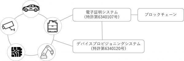 この度取得した特許の範囲は、ブロックチェーンを利用した新PKI技術となる「電子証明システム」と、新PKIを支援しIoTデバイスからパスワードを撤廃するOTA(無線通信:Over-The-Air)をソフトウェアで実現する「デバイスプロビジョニングシステム」です。