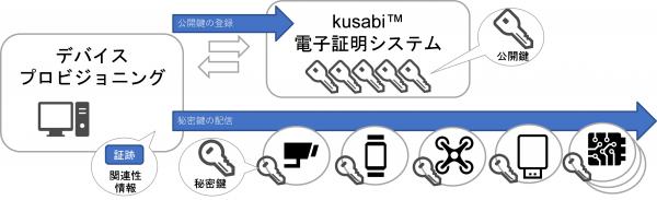 kusabi(TM)は、あらゆる「モノ=IoT(モノのインターネット:Internet of Things)」の安全な相互通信を目指した新PKI(公開鍵基盤:Public Key Infrastructure)技術を提供し、IoTのシステムモデルに最適なセキュリティを実現します。