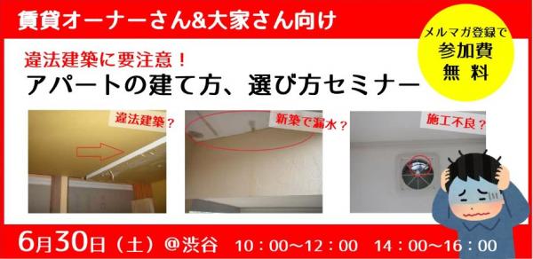 そこで、当社では30日(土)大家さん&賃貸オーナーさん向け「違法建築に要注意!アパートの建て方、選び方セミナー」を開催いたします。