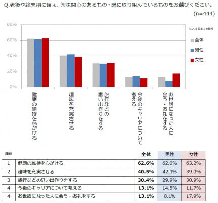 ――「健康の維持」「趣味の充実」「旅行などの思い出作り」