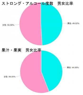 ・「ストロング」「アルコール度数」に対しては、男性49.02% 女性50.98%