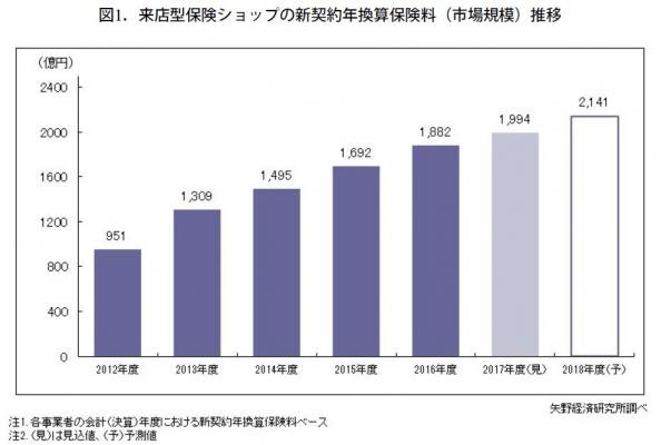 2017年度の来店型保険ショップ市場は鈍化傾向が顕在化し前年度比6.0%増の1,994億円の見込