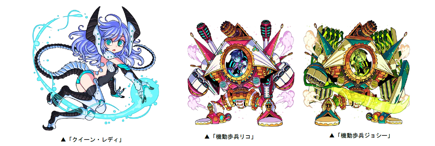本ダンジョン初級~上級では、1戦目と2戦目に、「タンク」と「サージェント」と「ハンターズ」が登場し、3戦目にボスとして、「クイーン・マザー」が登場します。また、鬼級以上から新たに「クイーン・レディ」「マシン・ファザー」「機動歩兵リコ」「機動歩兵ジョシー」が出現します。新たな強敵に挑み、ダンジョンクリアを目指しましょう!