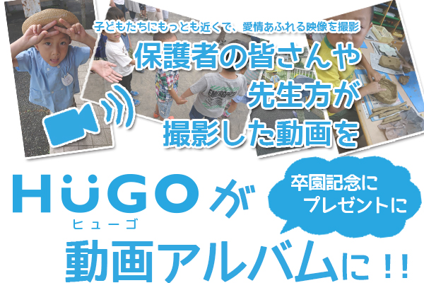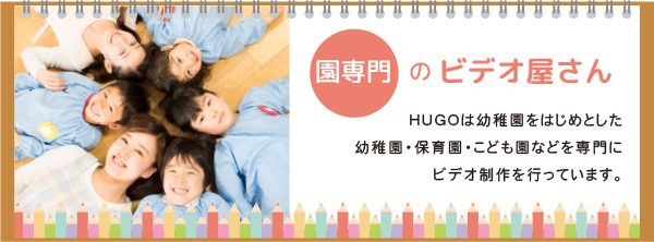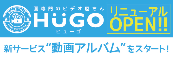 幼稚園のビデオ制作を始め園に関する多くの需要をカバーしてきたこどもメディアHUGO(ヒューゴ)が、“園専門”のビデオ屋さんHUGO(ヒューゴ)として、リニューアルオープン!園に関する専門性をより強め、幼稚園・保育園・こども園を専門にビデオ制作を行っていきます。