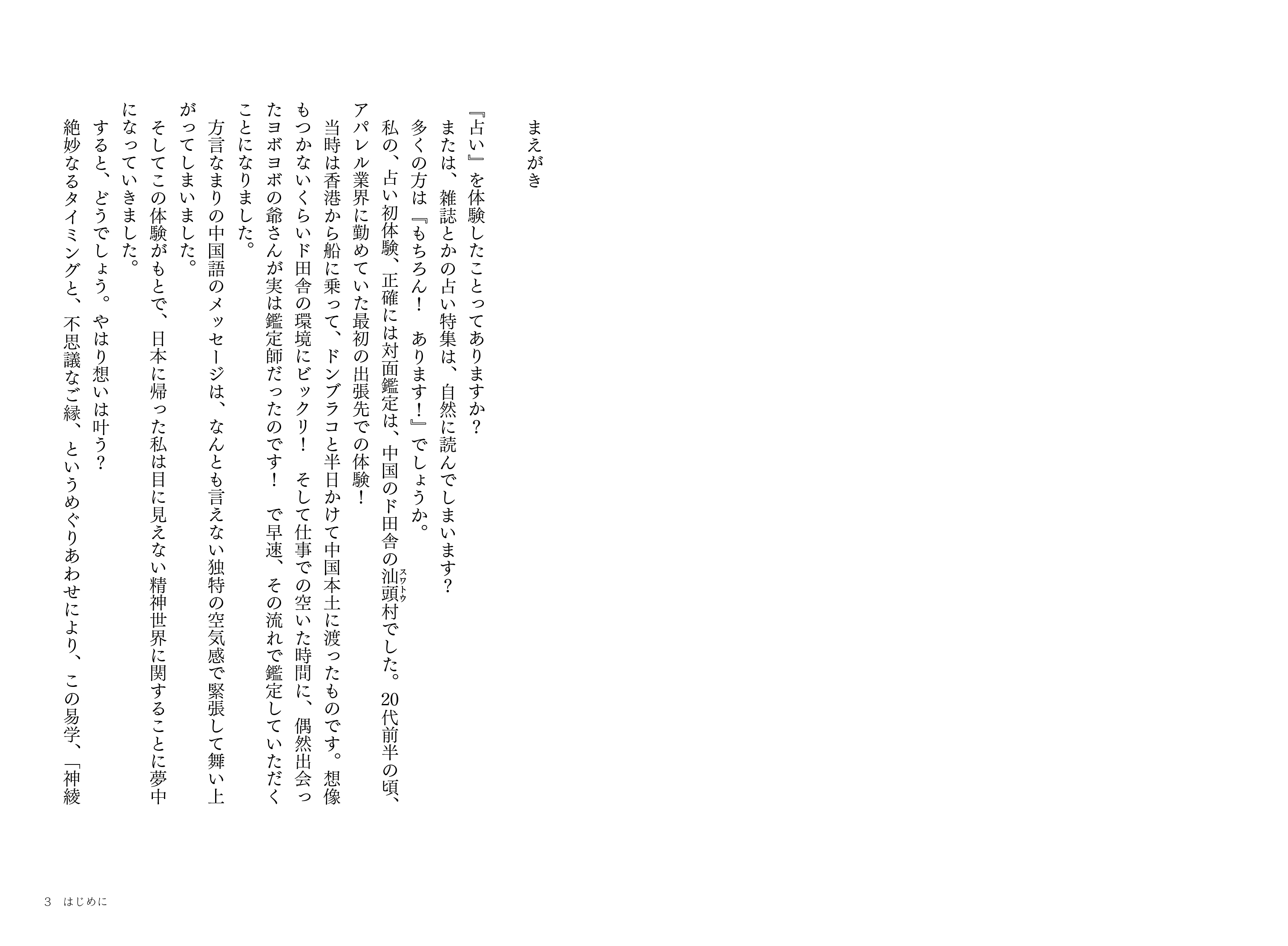 初めての海外出張にて、中国汕頭村近郊で偶然出会った占い師の老爺に初対面鑑定を受ける。