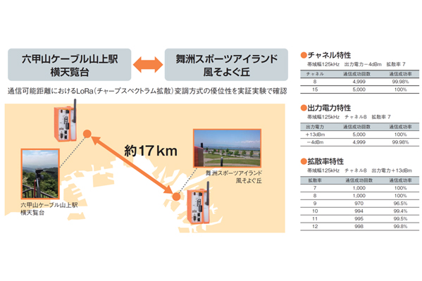 このたび「六甲山ケーブル山上駅横 天覧台(兵庫県)」と「舞洲スポーツアイランド 風そよぐ丘(大阪府)」との間の約17kmで新製品の通信テストを実施、安定した通信が行えることを実証いたしました。