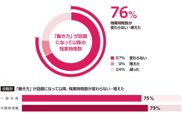 会社員の76%「残業減っていない」。一般社員vs管理職で 4ポイント差