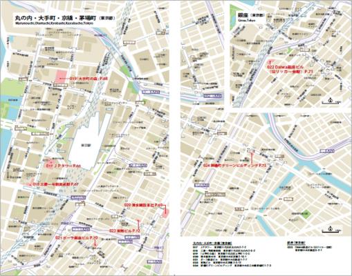 建築を知るには、実際に建物を見に行くことが一番。その手助けとなるよう詳細なマップを121枚収録しています。都市部のマップは駅の出口から、地方のマップはバス停や高速道路のIC、幹線道路から建物に辿り着けるよう作成。スマートフォンやカーナビを使うことも考慮して、マップの欄外には紹介している作品の所在地を記載しています。