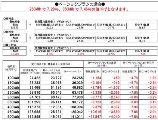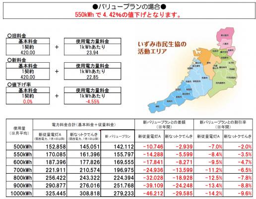 「コープでんき」には、一般的なご家庭向けの『ベーシックプラン』と、電気をたくさん使うご家庭向けの『バリュープラン』の2つの料金プランがありますが、今回の値下げは両プランの料金改定です。
