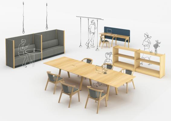 「ノイズのないプレーンさ」をデザインコンセプトに設計されたオフィス家具シリーズ「MARU(マル)」は、本格的なオール木製で設計されたオフィスファニチャーシリーズです。空間を選ばない個性、木の柔らかな風合い、丸い部材が作り出す心地よいリズム感をワークプレイスに提供します。それは、知識創造から情報処理まで、行動の自由度をワーカーに与える環境を提供します。