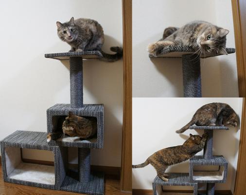 組み立て式ですが、強度はしっかりしているのでネコちゃんには元気いっぱい遊んでいただけます。