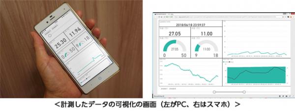 計測したデータはクラウドに送信され、パソコンでもスマホでも確認できる形でほぼリアルタイムに可視化します。