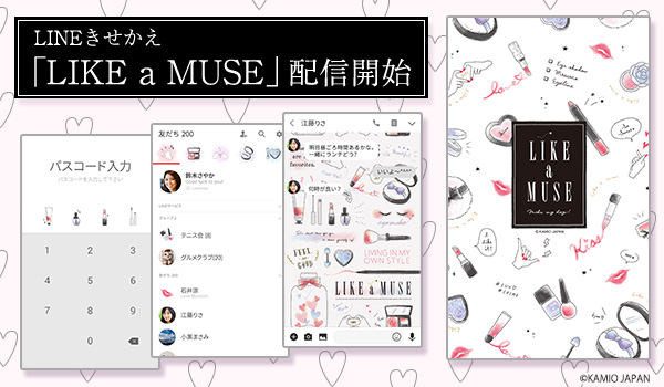文房具雑貨や、手描きモチーフで有名なカミオジャパンがデザインする「LIKE a MUSE」がLINE着せかえとなって登場!