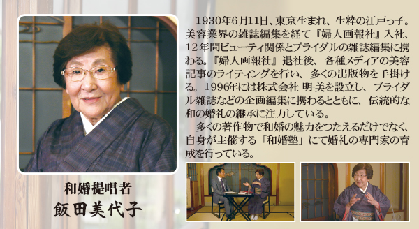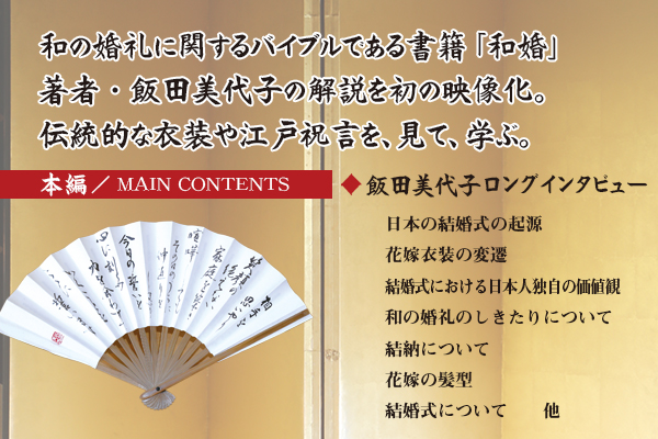 本編は和の婚礼の研究者である飯田美代子が対談形式で日本の結婚式の歴史から衣装や作法などを解説。