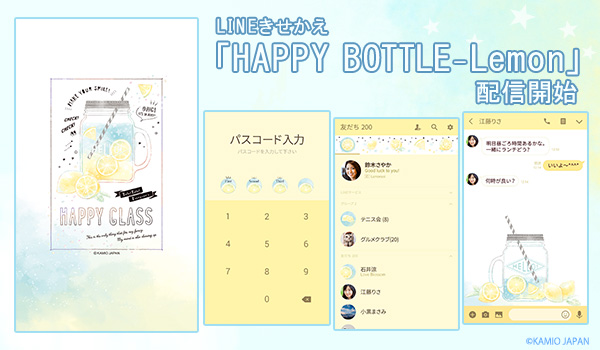 カミオジャパンがデザインを手掛けた「LIKE a MUSE」に続き、今度は「HAPPY BOTTLE」シリーズがLINE着せかえに登場!暑い夏にぴったりな爽やかシンプルでアクセントにレモンをプラス。ちょっぴりすっぱい着せかえとなっております。どなたでも使いやすいデザインなので、是非皆様ご活用ください☆