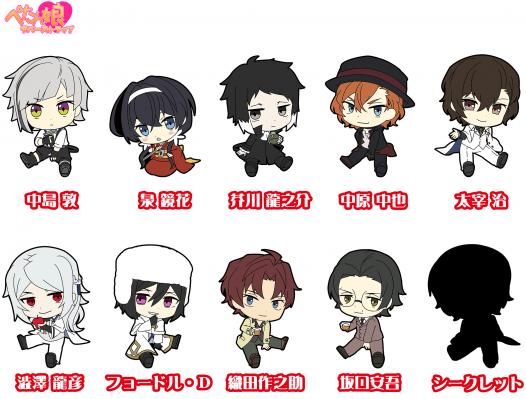 「文豪ストレイドッグス DEAD APPLE」のキャラクターを、ぺたんと座らせたデフォルメイラストに描きおこし