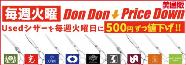 今回の『Usedシザーがどんどん安くなる!』キャンペーンは、「美通販」が取り扱っている理・美容師向けUsedシザーを「毎週火曜日に500円ずつ値下げしていく」キャンペーンです。
