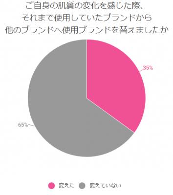 次に、このような肌質の変化を感じたママのうち、スキンケア商材のブランドスイッチを行ったのは、4割強にのぼることが分かった。