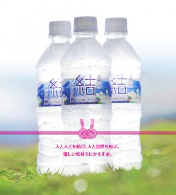 鳥取県の大自然の中から生まれた「結(ゆいのみず)」は、2018年モンドセレクション金賞を3年連続受賞。大山山麓の地下100メートルから採水した、上品で柔らかな口当たりの軟水。ラベルデザインは、鳥取の雄大な自然を象徴する伯耆大山に、県下の二十世紀梨の花をあしらっている。