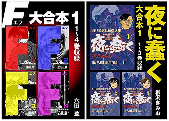 ゴマブックス株式会社(所在地:東京都港区、代表取締役社長:赤井仁)は、2018年7月5日(木)より、Kindleストア、楽天Kobo電子書籍ストア、Google Play、iBooks、ならびにSONY Reader Storeにて、人気青年コミック『F ―エフ―』(六田登=作)、『夜に蠢く』(柳沢きみお=作)など、コミック合本版13作品の配信を開始しました。