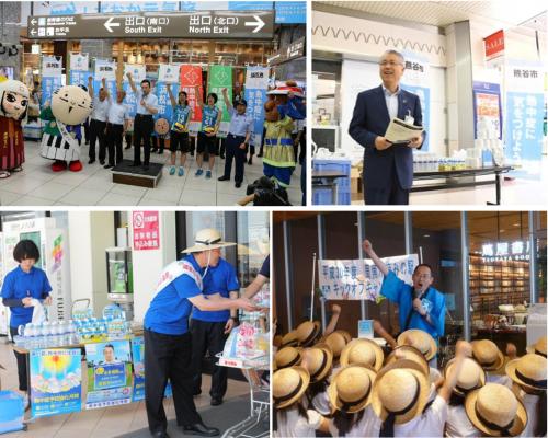 上記の自治体では、駅前や庁舎前などで、同日同時刻一斉に出陣式が開催されました。
