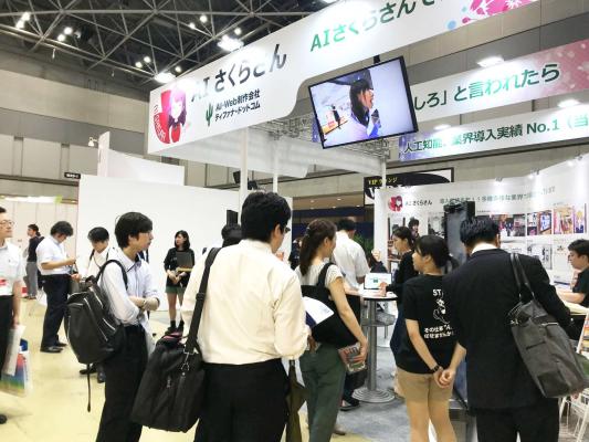 先週開催された「第1回 Web販促EXPO 夏(2018年7月4日(水)~6日(金))」に続き、現在東京ビッグサイトにて開催されている「第5回 働き方改革EXPO(2018年7月11日(水)~13日(金))」でも「AIさくらさん」をご紹介していますが、人手不足でお悩みの多くの企業にも「AIさくらさん」を知ってもらいたいということで、急遽出展が決まりました。