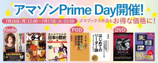 ゴマブックス株式会社(所在地:東京都港区、代表取締役社長:赤井仁)は、2018年7月16日(月)12:00~17日(火)23:59まで開催されるAmazon プライム会員を対象にした年に一度の大セール「アマゾンPrime Day」にあわせて、ゴマブックス作品(電子書籍、書籍、DVD)2,000タイトル以上が対象となるキャンペーンが開催されることをお知らせします。