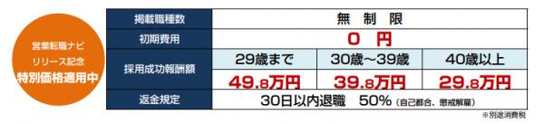 営業転職ナビは「初期掲載費用ゼロ」の完全成功報酬型。採用ができるまで一切費用はかかりません。
