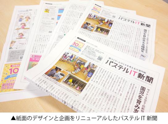 ここ数年、登降園管理アプリや午睡チェックセンサーなど、園内業務にITを活用する園が急増する一方で、保育者が安心して働くことのできる職場環境づくりや、保育者の人材確保・育成、多様な子どもたちを育むための保育、保護者とのより質の高いコミュニケーション方法など、園が取り組んでいるテーマは広く、深くなってきています。こうした取り組みには、IT活用だけでなく、様々な専門家や企業のノウハウ・技術を組み合わせて課題を解決していくことが重要になってきます。そこで、パステルIT新聞は、これからの園づくり、人づくりにより有益となる情報を届けられるよう、読者のマーケティングに基づいた紙面づくりを進めていきます。