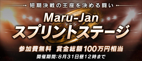 また、Maru-Jan for Macでは、現在開催されている賞金総額100万円相当のMaru-Janスプリントステージへも参加できます。同大会は、全てインターネットを通じた対局で完結するため、気軽に参加していただくことが可能です。大会は7月30日(月)から8月31日(金)まで開催されます。