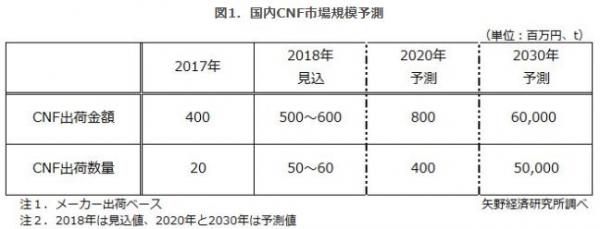 2017年の国内CNF市場は出荷数量が20t、出荷金額が4億円