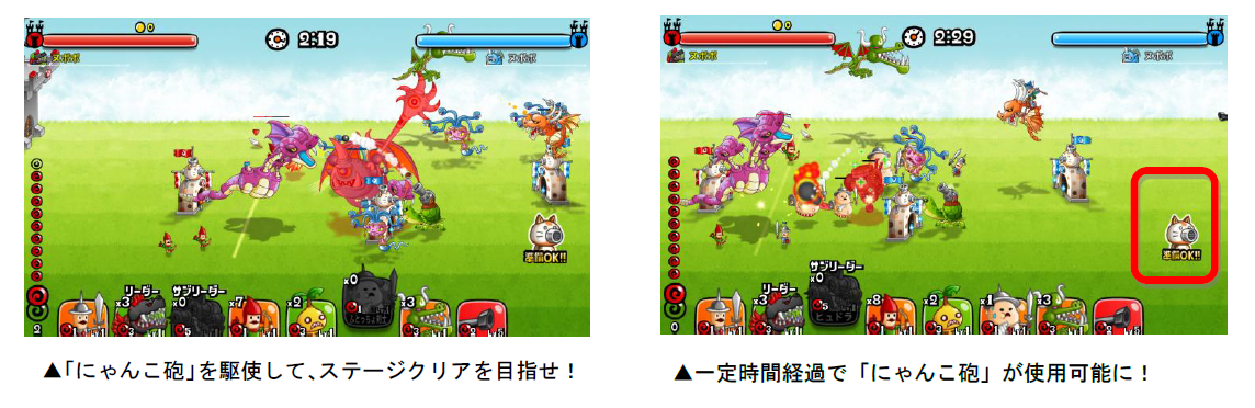 ・バトル開始後、一定時間経過で「にゃんこ砲」が使用できるようになります。