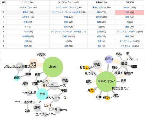 (2) トップの2タイトル「BLEACH」と「未来のミライ」の話題急上昇要因を考察してみると