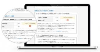 また、検索エンジンに評価されているコンテンツが、自身の対策ページに含まれるかを○×で判定しますので、不足しているコンテンツ内容を簡単に確認することができます。