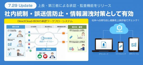 ダイレクトクラウド、法人向けオンラインストレージ「DirectCloud-BOX」のアップデートにより承認ワークフロー、Active Directory認証に対応