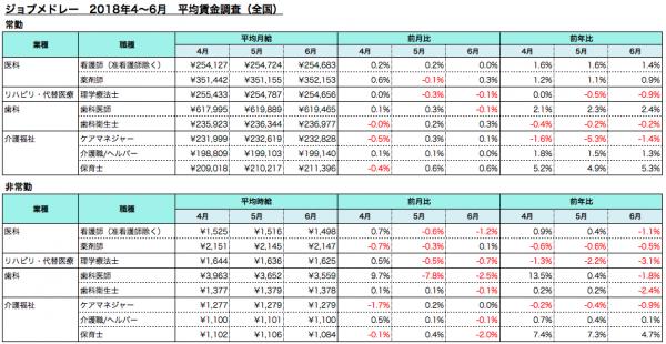 株式会社メドレー(本社:東京都港区、代表取締役医師:豊田 剛一郎、代表取締役社長:瀧口 浩平)が運営する医療介護求人サイト「ジョブメドレー」は、医療介護系8職種について、2018年4~6月の平均月給・時給をまとめました。