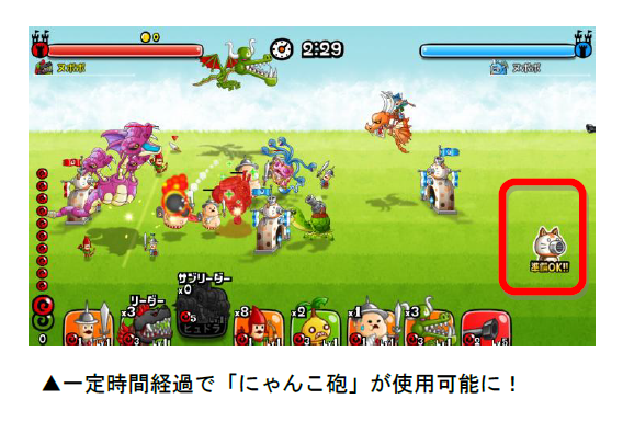 期間中、フリー対戦とリーグのバトルフィールドが「にゃんこ大戦争」マップとなり、一定時間経過で「にゃんこ砲」を使用することができます。「にゃんこ砲」を活用して勝利を掴みましょう!