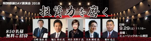 今年も各界から豪華講師陣集結、日産証券特別感謝DAY2018「投資力を磨く」。