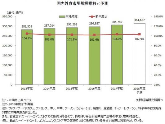 2017年度の外食市場規模は前年度比3.0%増の30兆5,749億円