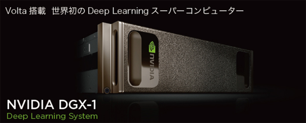 NVIDIA DGX-1は、NVIDIA自社設計のNVLink(TM)対応マザーボードに、TESLA V100(Volta)を8機搭載した世界初のDeepLearning専用スーパーコンピュータです。TESLA V100は倍精度で7.5TFLOPS、単精度で15TFLOPS、Tensor Core利用時で120TFLOPSの演算性能を実現。8枚のTesla V100を搭載しているDGX-1は、半精度(FP16)で実に960TFOPSの性能を誇るワンボックススーパーコンピューターです。