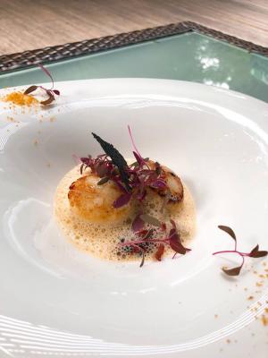 ・ホタテのポワレ スペルト小麦の雲丹リゾット 雲丹の泡
