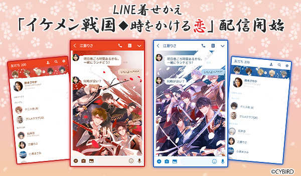 株式会社サイバードの提供する「イケメンシリーズ」のゲーム作品の一つとして展開中の本作品は、同社が提供するシリーズ中で非常に人気があるタイトルで、ゲームとリアルを仮想体験できる武将ゆかりの地の温泉ツアー旅行や旅行企画なども大好評。主に20代~30代の女性を中心に高く支持されています。有名な歴代戦国武将11人と時をかけた波乱な恋をしたり、おしゃれな着せ替えをしたり…。今度はLINE着せかえでイケメン武将たちに胸キュンしてみてはいかがでしょうか。