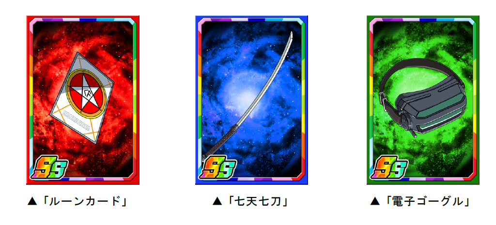 スペシャルダンジョンのボスを倒すと、まれに限定子分カード「ルーンカード」「七天七刀」「電子ゴーグル」を手に入れることができます。限定子分カードは、複数枚集めると進化ができ、子分スキルの効果が強力になります。