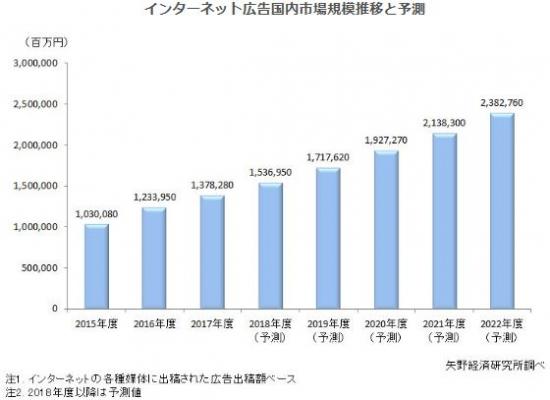 株式会社矢野経済研究所(代表取締役社長:水越孝)は、国内のインターネット広告市場を調査し、現況、参入企業の動向、および将来展望を明らかにいたしました。