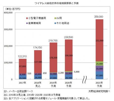 株式会社矢野経済研究所(代表取締役社長:水越孝)は、2018年のワイヤレス給電市場を調査し、アプリケーション別の動向、参入企業動向、将来展望を明らかにいたしました。