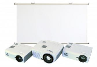 最もポピュラーなクラス(解像度)に対し、どこでもプロジェクターをお使いいただけるように、持ち運び可能な掛図スクリーンを組み合わせることで、面倒な設置も考えることなくすぐにお使いいただけます。