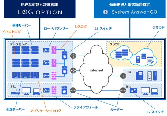 Log Optionは、統合ログ管理を行うためのオプション製品です。各機器が出力するシスログ、イベントログ、アプリケーションログなど各種ログを一元管理することにより、内部統制やセキュリティ対策などに必要となる詳細かつ完全な証跡を取得することが可能です。