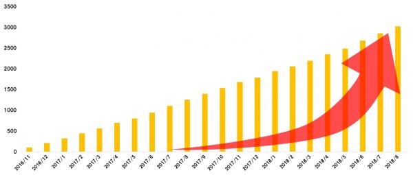 ■累積登録会員数の推移(2018年8月27日現在)