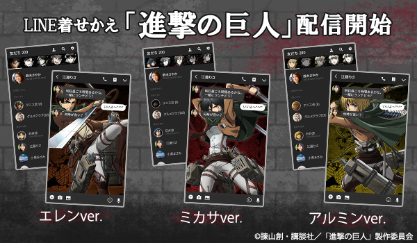 2018年8月3日(金)に配信を開始し、翌8月4日(土)にLINE Creators Market着せかえランキングで1位を獲得したTVアニメ「進撃の巨人 Season 3」vol.1の第2弾として、「進撃の巨人 Season 3」よりエレン、ミカサ、アルミン、各キャラクター版のLINE着せかえが登場!リリース第2弾にあたる本作は、主人公である「エレン」、ヒロインの「ミカサ」、エレンとミカサの幼馴染である「アルミン」の3人のLINE着せかえを3作品同時配信。それぞれ世界観に合わせた臨場感伝わるデザインに仕上げております。まだ出ていない「あの」キャラクターをはじめ、今後も人気キャラクターが続々配信予定となっておりますので、好みや気分に合わせて着せかえをお楽しみ下さい!